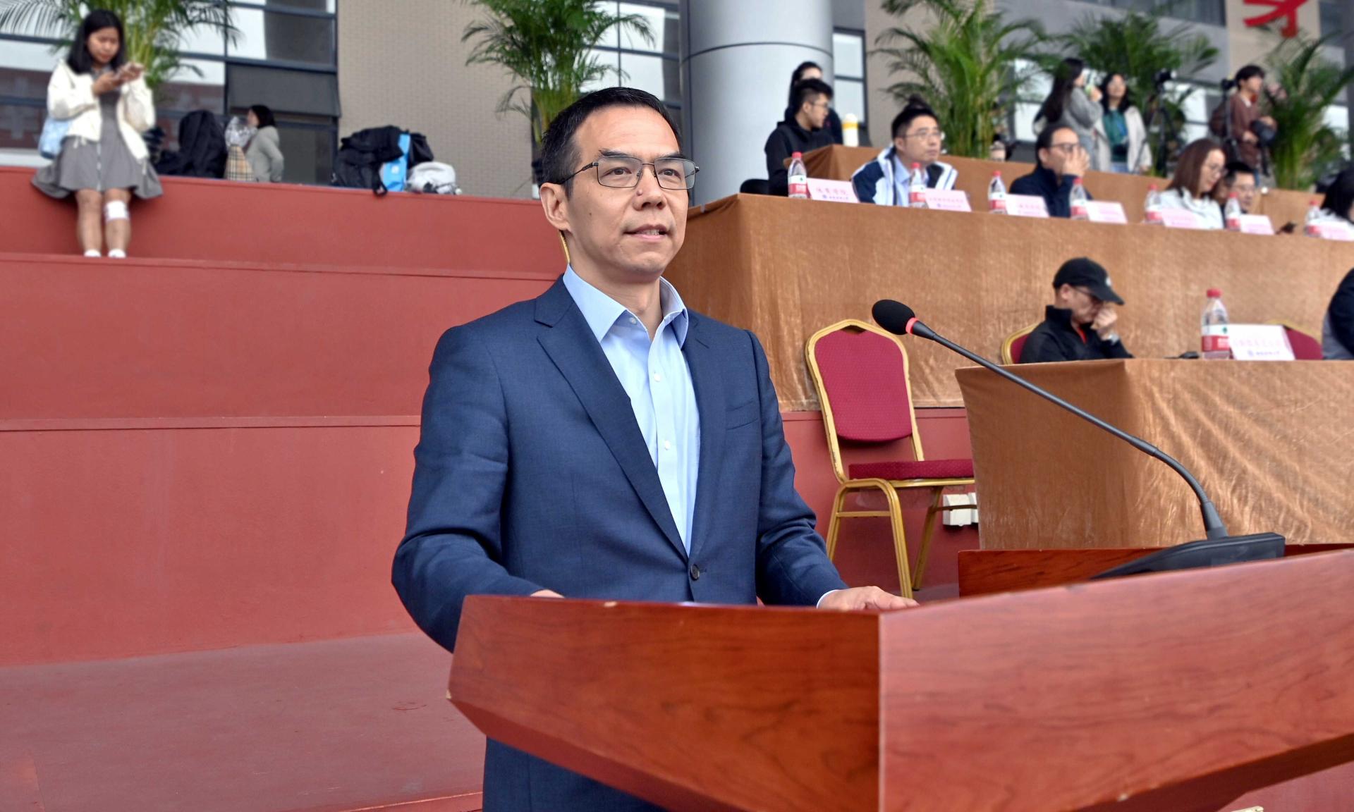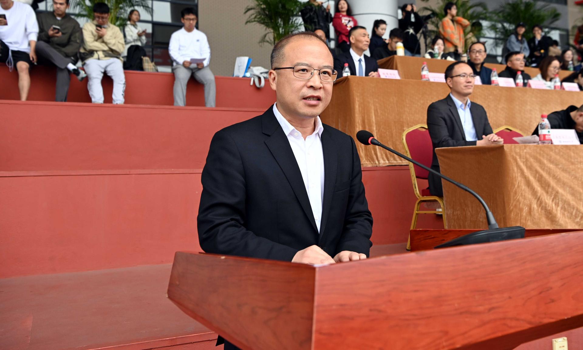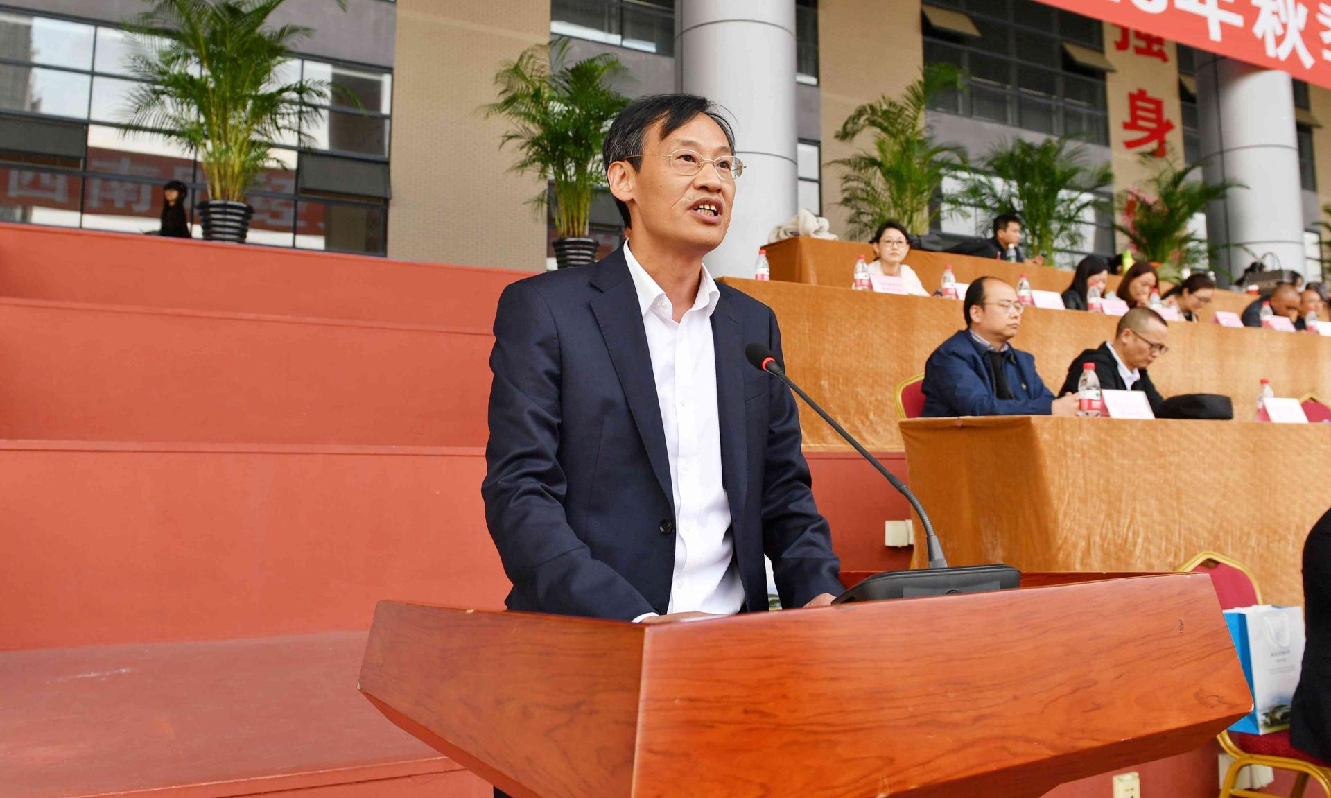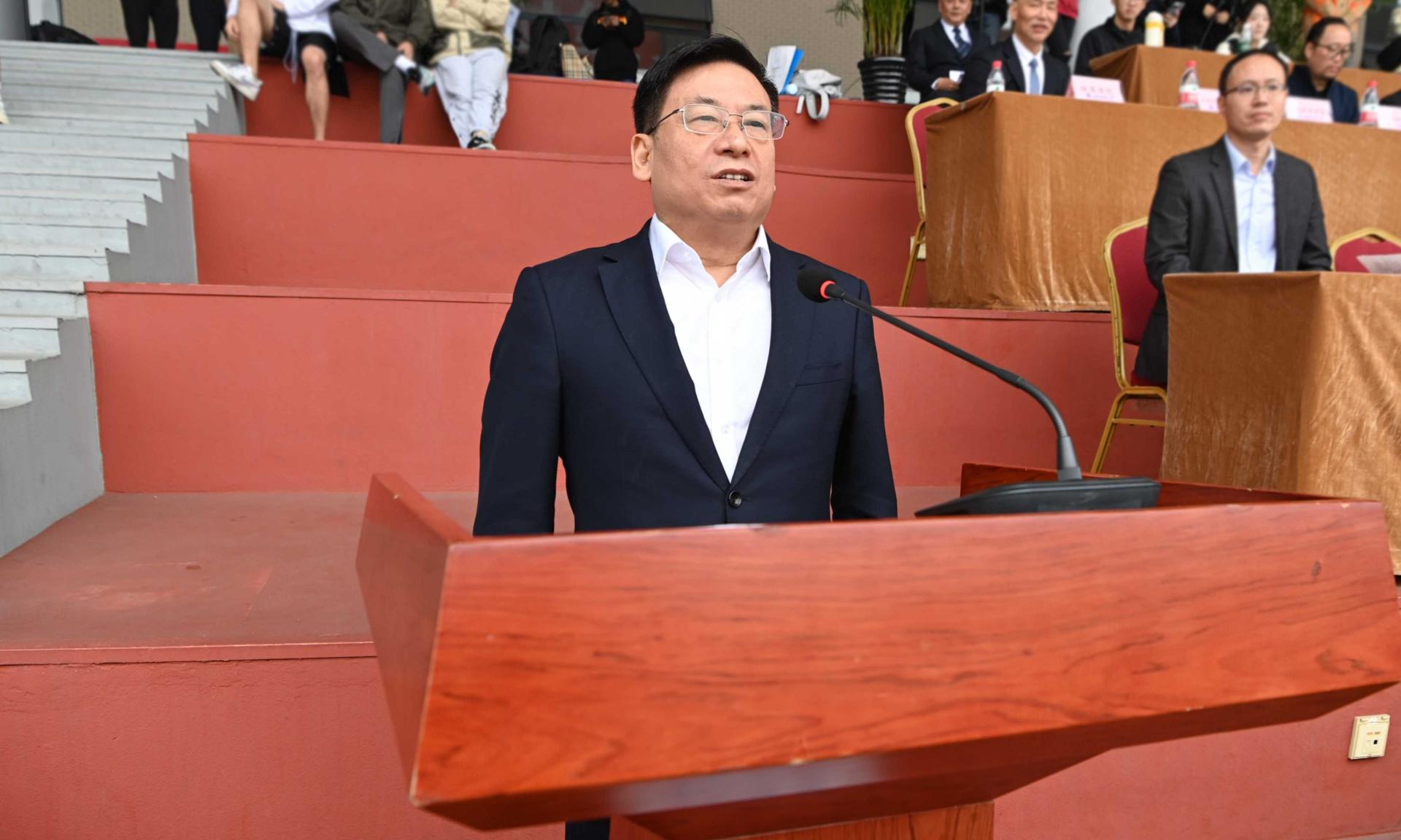 26日8时30分,运动会在晨曦运动场举行。赵德武宣布运动会开幕,李永强致开幕辞。李永强指出,体育是社会发展和人类进步的重要标志,承载着国家强盛和民族振兴的梦想;体育也是全面落实立德树人根本任务的基础性工程,在“五育并举”中前承德智、后接美劳,是承前启后的关键一环。学校高度重视体育工作和学生健康成长,把体育当作培养卓越人才的沃土,坚持“健康体育、快乐体育、终身体育”理念,着力构建“1+3爱体育(中国)模式”,形成了“一校多品、一院一品、一社一品”体育教育新格局,实现了师生“育体”和学校“育人”的有机结合。李志生主持开幕式。
