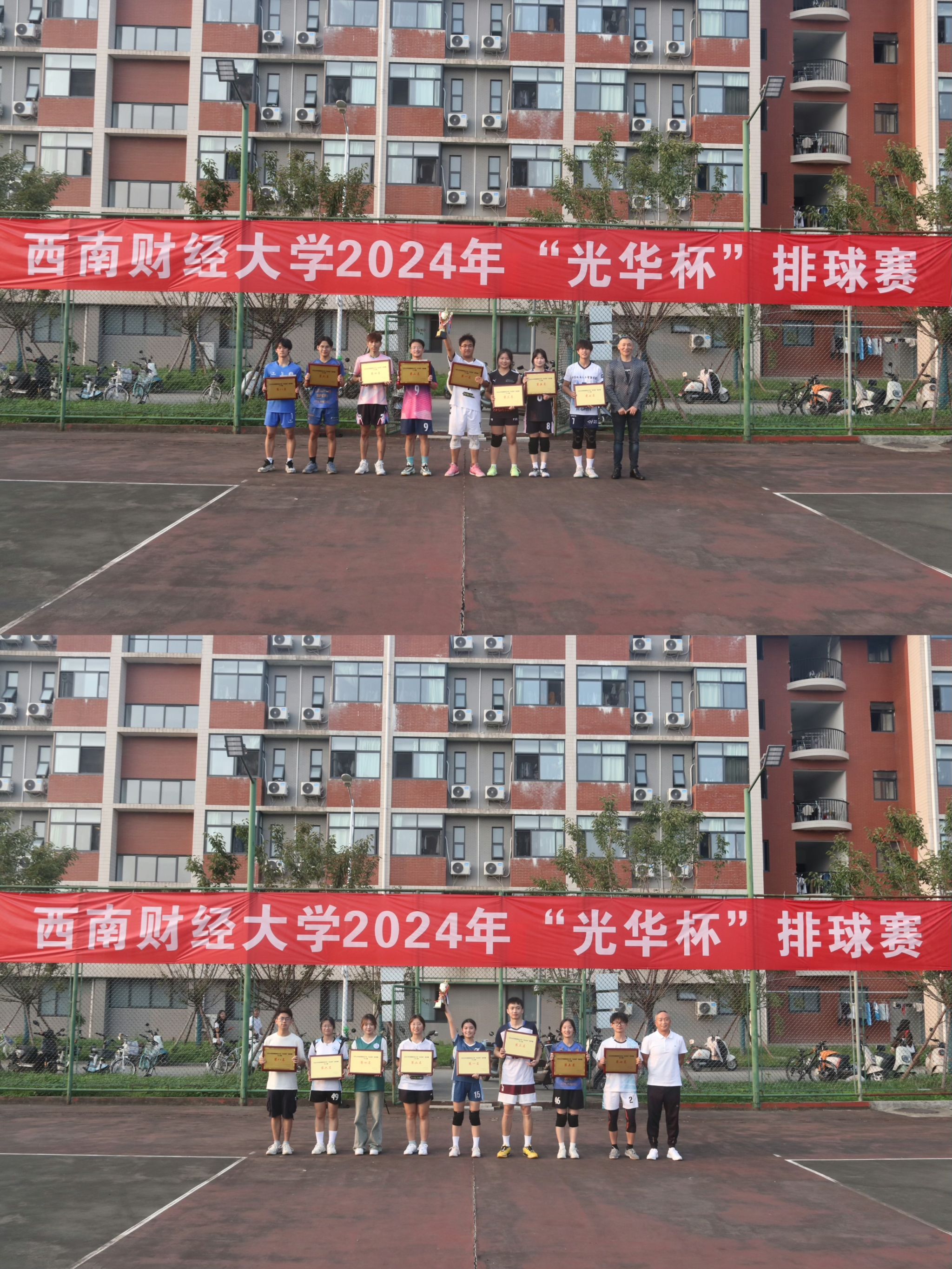 本次比赛历时7天,共有17个学院,24支代表队,约250人参加了六人制和九人制排球比赛,在比赛现场,各院的啦啦队为代表队敲锣打鼓,呐喊助威,使得整个赛场充满了活力和激情。队员们也更加奋力拼搏,每球必争。通过比赛,让同学们更加了解彼此,学会相互支持和协作,这对于他们今后的学习和生活都将产生积极的影响。校园排球比赛不仅是一项竞技活动,更是增强同学们友谊和团队精神的重要途径。希望西财学子能够继续保持这种团结拼搏的精神,成为堪当民族复兴重任的时代新人,在新时代奋进新征程中,砥砺奋发,为百年西财的体育事业和校园文化喝彩。