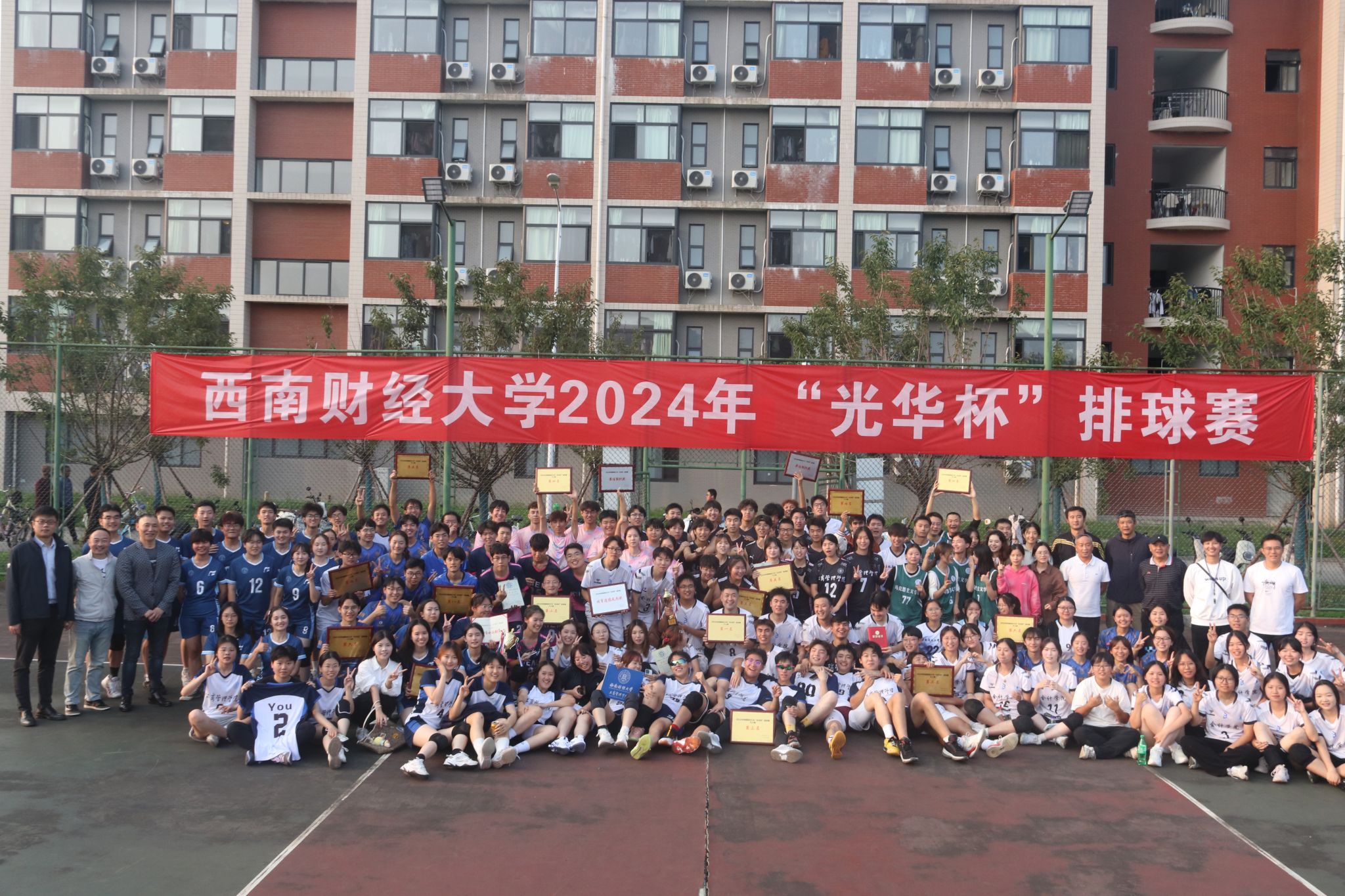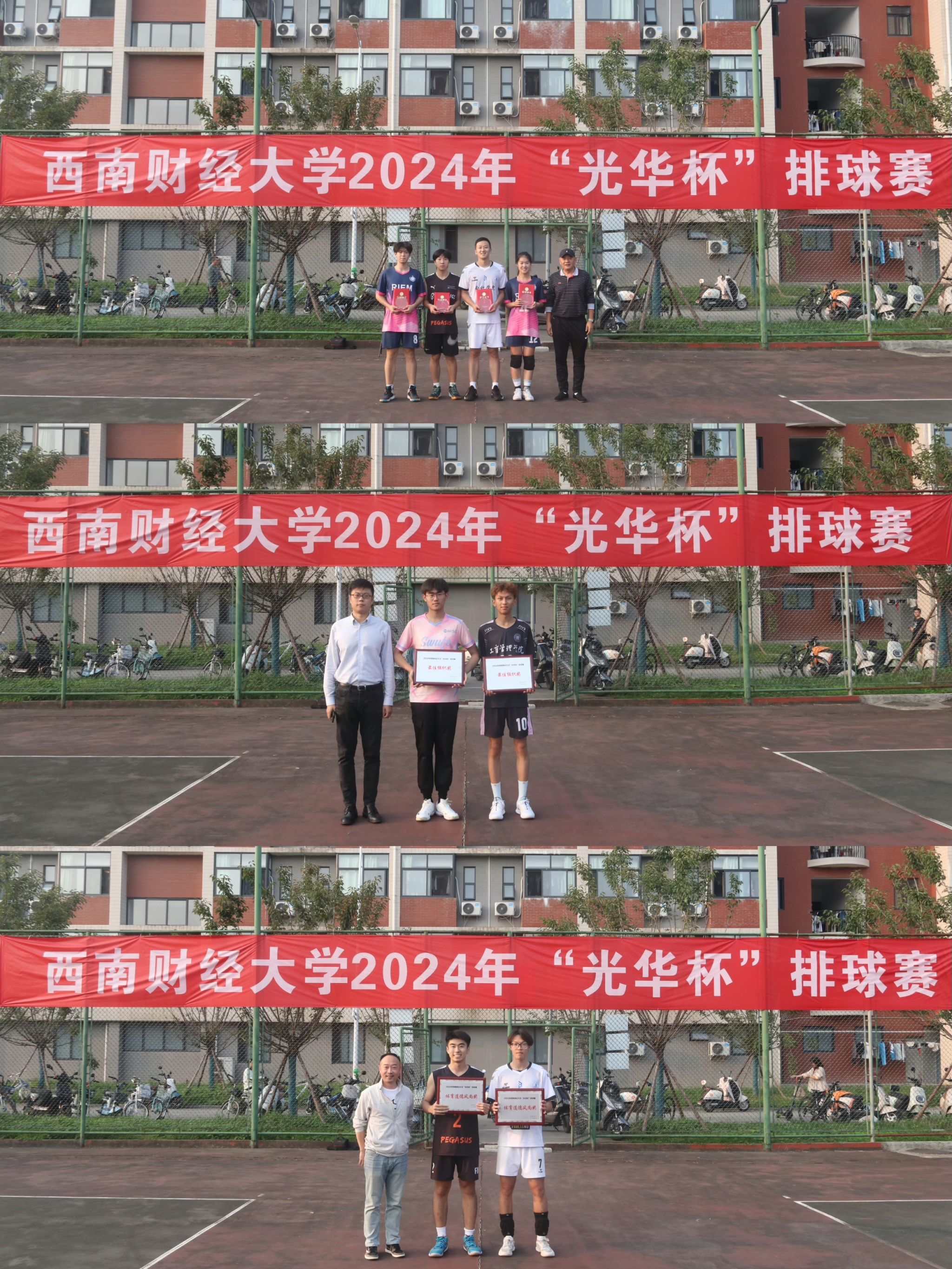 10月15日下午,“礼赞新时代·奋进新征程,迎百年校庆·铸西财辉煌”2024年西南财经大学 “光华杯”排球赛颁奖仪式在晨曦排球场举行。爱体育在线登录院长杨远波,党委书记周正宏,副院长阴涛、陈丛刊,副书记李治为获奖学院以及个人颁发了荣誉证书及奖牌。